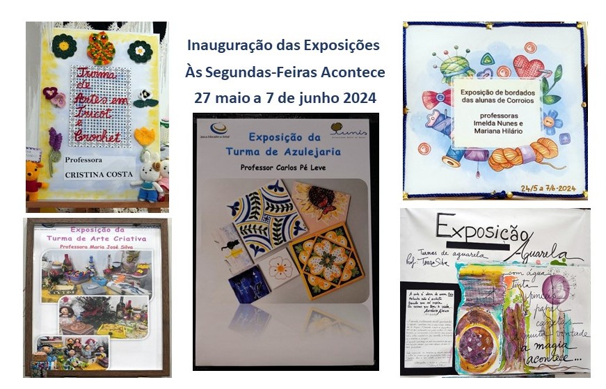 Inaugurações das Exposições " Bordados e Bainhas Abertas", “Pintura a Aguarela”, “Azulejaria”, “Arte Criativa “e “Artes com Tricot e Crochet” em 27/5/2024