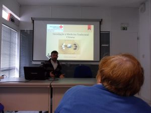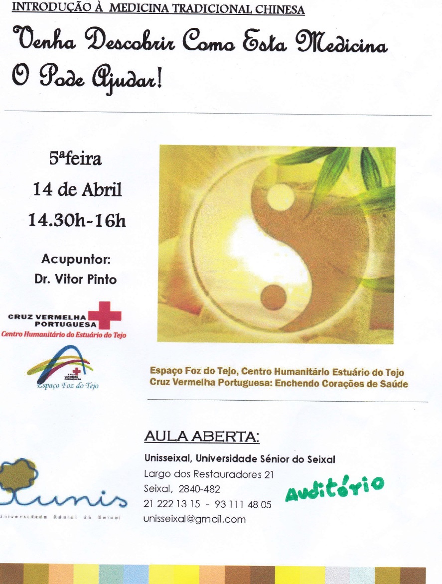 Introdução à Medicina Trd ChinesaSAM_0716A medicina tradicional chinesa apresenta-se hoje com uma alternativa à medicina convencional do Ocidente. Daí o seu valor e interesse. Foi por esse motivo que a Universidade Sénior do Seixal aceitou a oferta do Centro Humanitário do Estuário do Tejo, da Cruz Vermelha Portuguesa, para uma palestra sobre acupunctura. Esta teve lugar no auditório da Unisseixal no dia 14 de abril, pelas 14,30. Foi palestrante o Dr. Vítor Pinto, especialista no assunto. Em linguagem simples e fundamentada e, para mais, acompanhada por projeções em PowerPoint, este dissertou não somente sobre acupunctura, mas também sobre fitoterapia e dietoterapia. A audiência, que, infelizmente, não foi muito numerosa (problemas de dia e de hora), mostrou-se muito interessada e participativa. A satisfação foi geral, e foi até pedido que se façam mais na mesma linha, no próximo ano académico.
