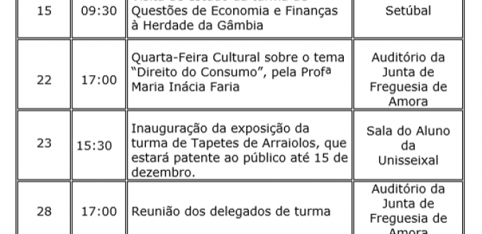 Dia 14 de novembro, no Fórum Municipal do SEIXAL vai comemorar-se mais uma sessão solene de ABERTURA do ANO ACADÉMICO da Unisseixal.O Conselho Diretivo da Universidade Sénior do Seixal tem o prazer de convidar para esta sessão solene todos os alunos, professores, familiares e amigos e venham comemorar connosco.A  Sessão Solene do ANO ACADÉMICO, tem a seguinte programação: 14:30 h […]