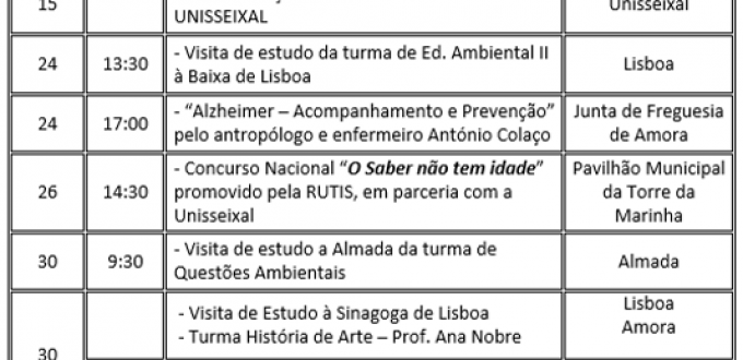 Promovido pela RUTIS – Rede de Universidades Seniores, realizou-se, no dia 26 de janeiro de 2018, no Pavilhão Municipal da Torre da Marinha – Seixal, o XIV Concurso “O Saber não Tem Idade”, que a Universidade Sénior do Seixal organizou e acolheu. Estiveram presentes vinte e quatro universidades seniores de todo o País, sendo vinte […]