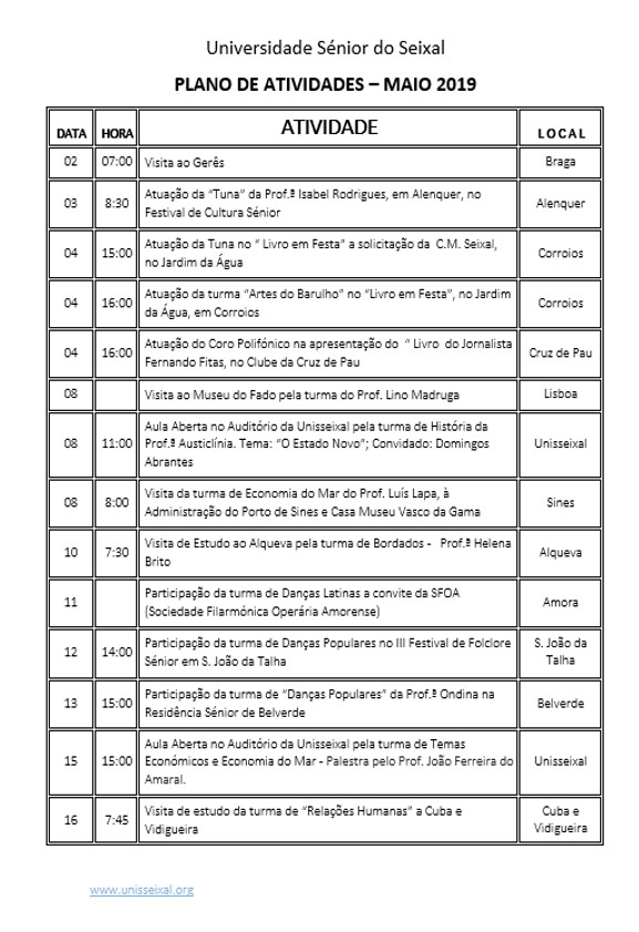 Plano de Atividades Maio 2019