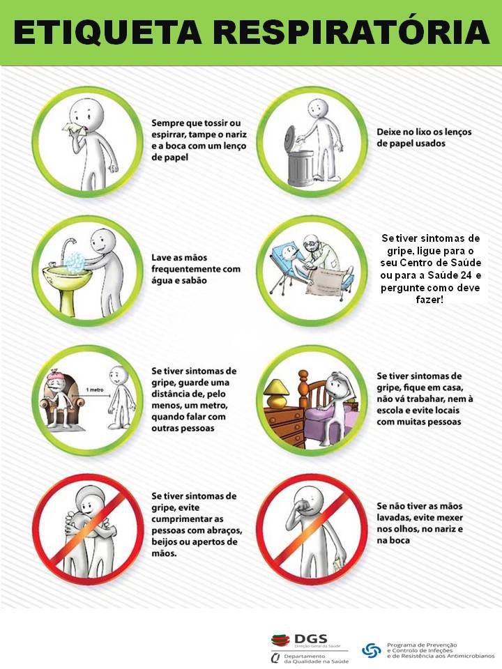 - Etiqueta respiratória e, para quem puder e quiser descarregar a aplicação, Stayaway Covid.