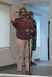 A Reitora, prof. Mariana Mareco, sentiu-se logo a dirigir uma “Universidade de Excelência, num edifício de Excelência”, agradeceu também ao arquiteto e à Teixeira Duarte, enumerou uma a uma todas as divisões do edifício (ver num texto à parte), falou das cores do edifício (azul, amarelo e dourado) – as cores do Município, ressaltando a importância de nos sentirmos todos comprometidos não com o PIB, mas com o FIB, o índice da FELICIDADE que todos almejamos para a construção de um mundo melhor nesta “universidade de afetos”. Agradeceu vivamente aos parceiros que nos têm disponibilizado espaços, nomeadamente as Juntas de Freguesia de Amora e Corroios e o Centro Cultural e Desportivo das Paivas (onde decorriam um terço das aulas) e depois demorou-se a elogiar a Câmara com o seu apoio logístico e avultado investimento, o arquiteto João Salvado, a empresa Teixeira Duarte, o prof. Tomás e ainda a vereadora da Educação, Dr.ª Maria João Macau, que desde a fundação da CES nos tem acompanhado, ela agora como recurso mais próximo para todas as solicitações, mesmo que fosse “às tantas da noite”…