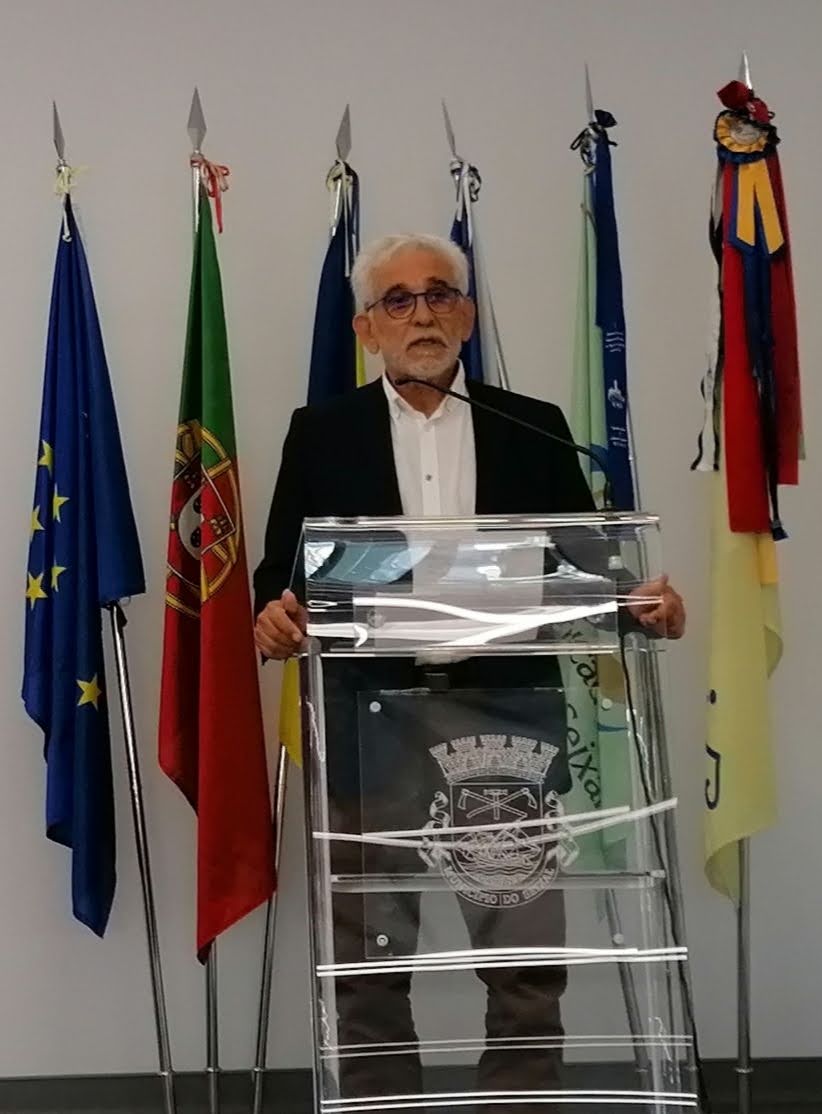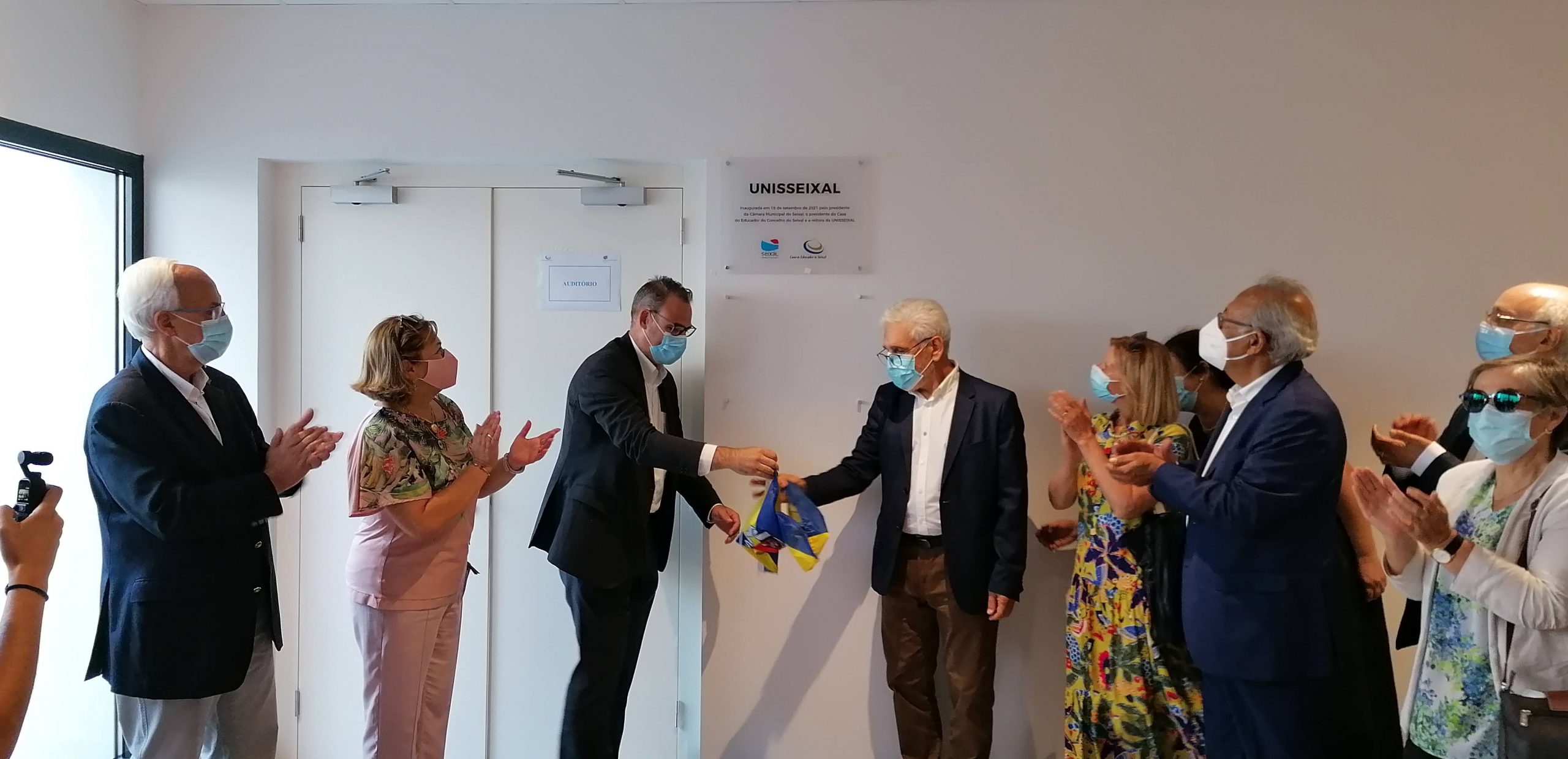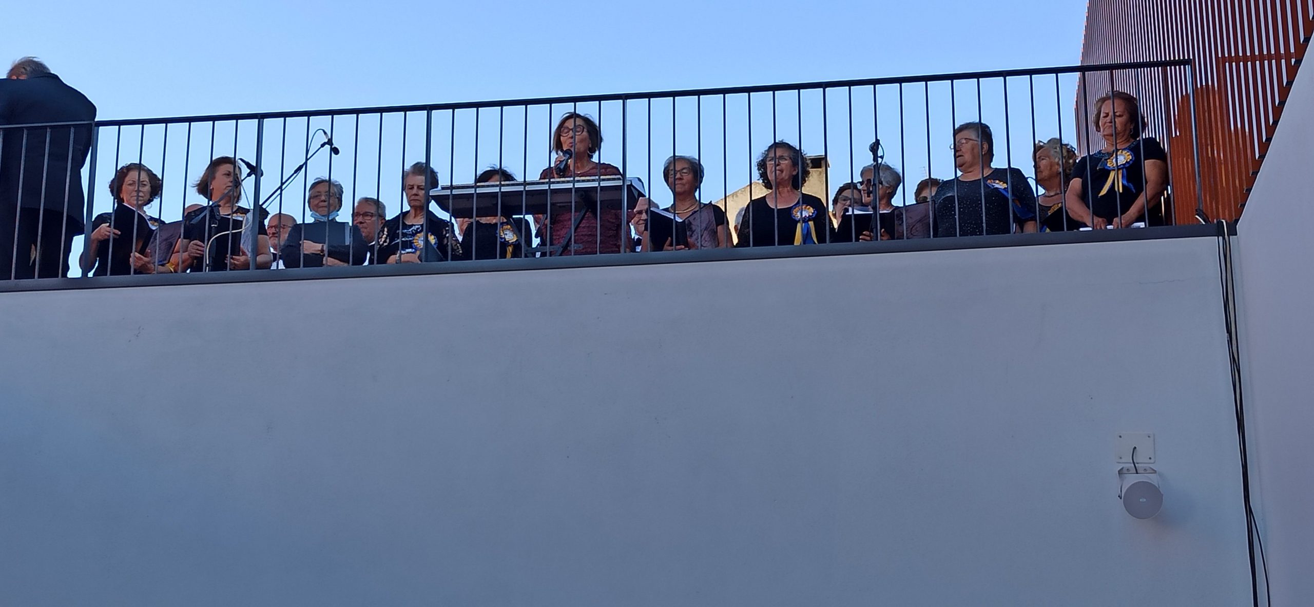 Com os convidados à entrada, caiu sobre nós, vindo do terraço, o som do Coro Polifónico da Unisseixal, dirigido pelo voluntarioso maestro Maurício Silva. Nos ouvidos ficaram estas palavras do hino: “Unisseixal é encontro, convívio, fraternidade…”, seguindo todos para o descerrar da placa da inauguração junto do Auditório, onde decorreu a sessão solene. Logo aí, impressionou aquele mobiliário novinho e colorido, com um palco muito digno, onde se sentaram o Presidente da Câmara do Seixal (Joaquim Santos), o Presidente da Casa do Educador (Jaime Ribeiro), a Reitora da Unisseixal (Mariana Mareco) e o arquiteto João Salvado, cabeça de todo este projeto. Protocolou a sessão a prof. Amélia Costa, sempre sorridente.