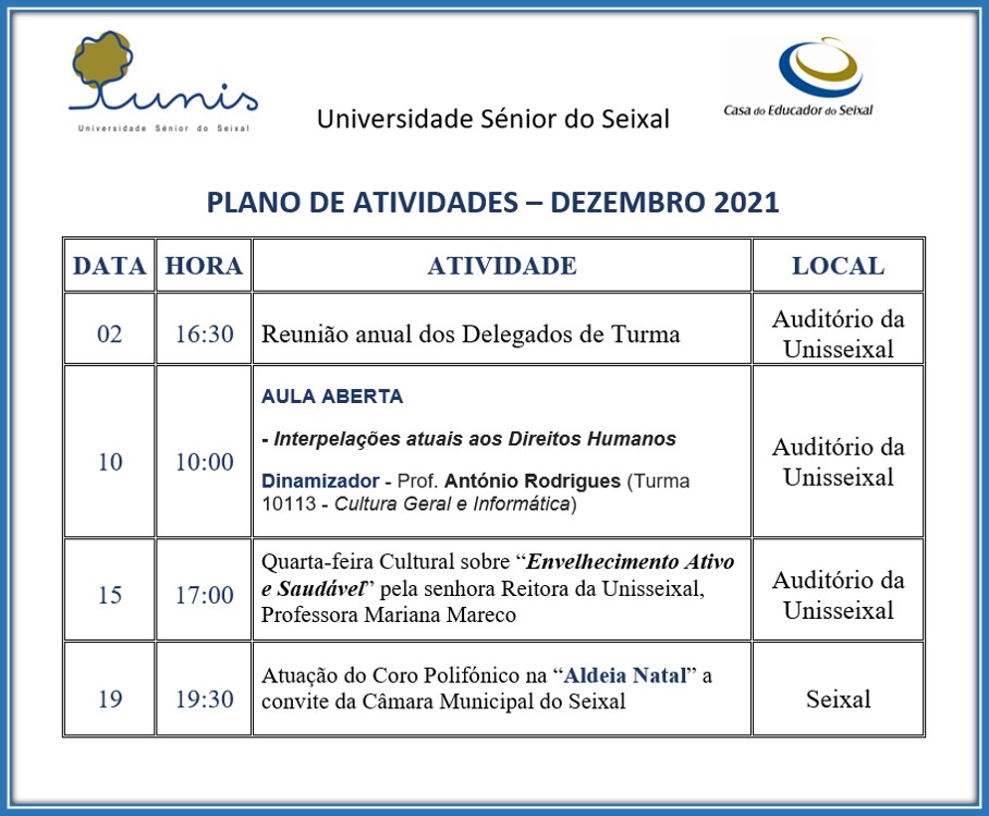 Atividades Dezembro 2021