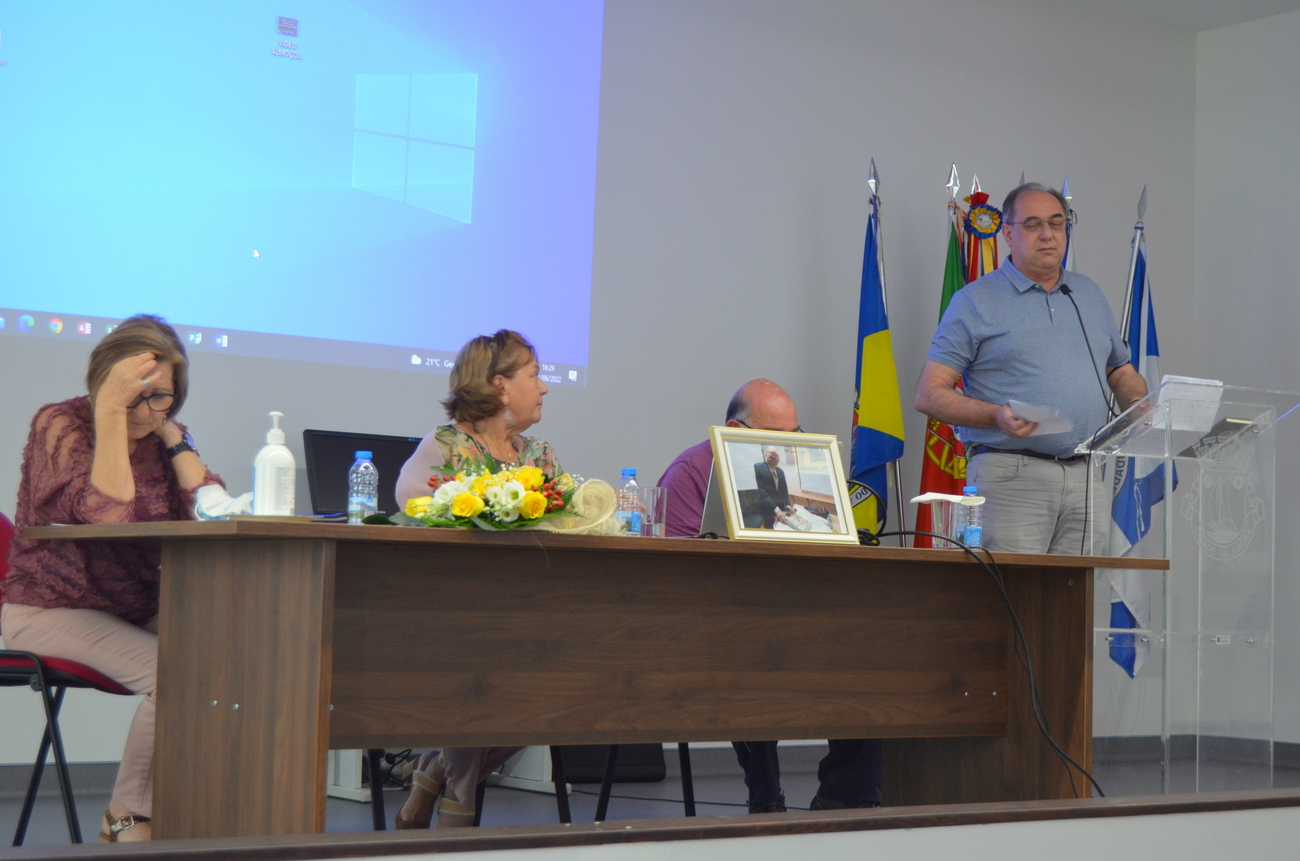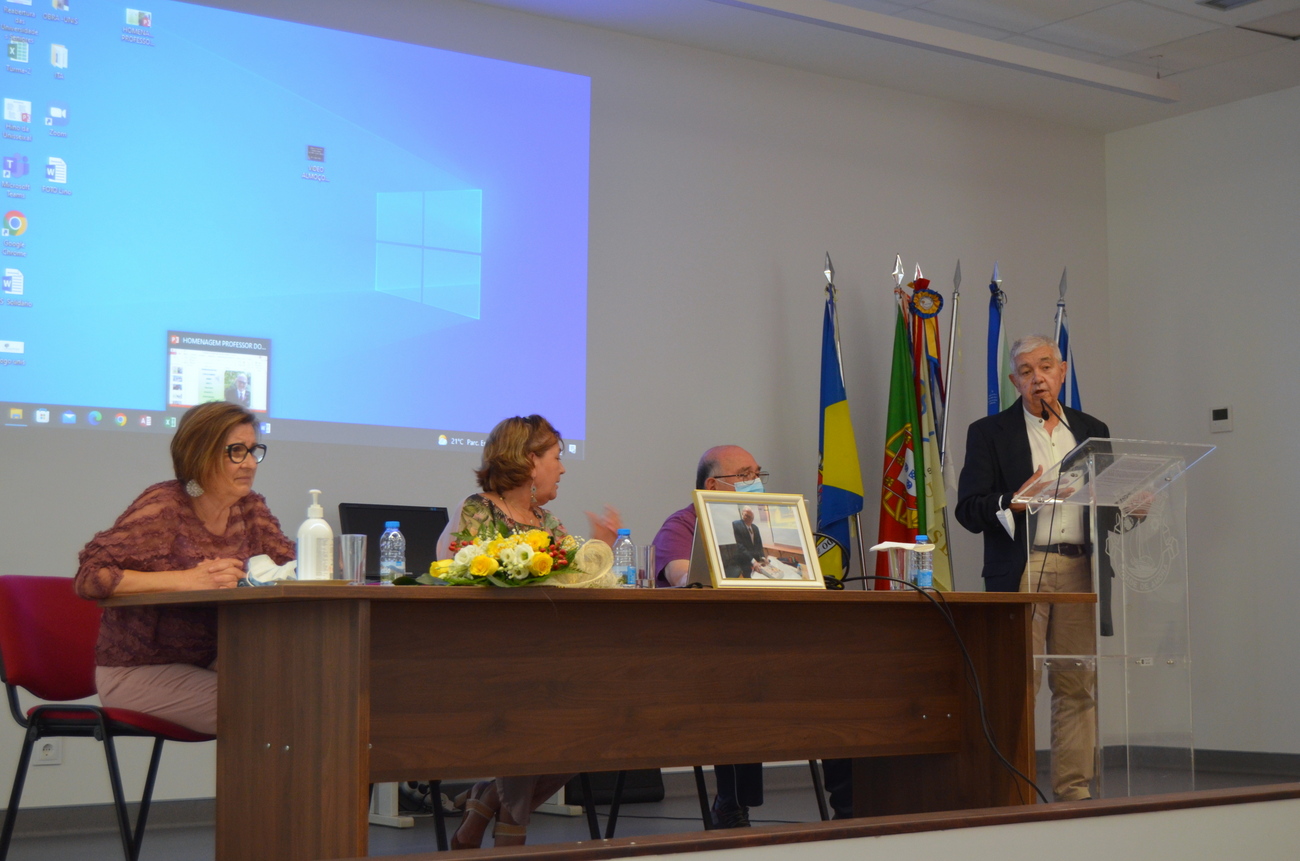 Esta sessão de homenagem foi conduzida pela professora Amélia Costa que abriu com o poema “Saber Viver” de Cora Coralina, à qual se seguiu a leitura de um excerto da ata da última reunião de Senado, órgão do qual ele era ilustre membro. Nesse excerto o Professor salientava o quanto se interessava pela UNISSEIXAL bem como pelos seus projetos e novas e futuras instalações.