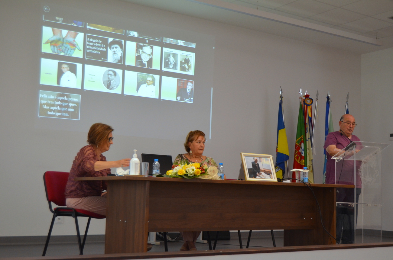 Nesta tarde muito rica, ouvimos como foi o primeiro contacto com o Prof. Carlos Ribeiro, no ano de 2007, feito pelos professores António Henriques à data presidente da Casa do Educador e pelo ex-reitor professor António Luís. Ambos referiram a sua grandeza de coração o seu espírito humanitário e a sua elevação de caráter, que na altura já com 80 anos, ao ser convidado para pertencer ao Senado da Unisseixal, respondeu que sim, mas também queria ser professor da disciplina de Saúde, tarefa que assumiu desde o primeiro ano letivo. Lembraram-se os muitos momentos de colaboração que o Mestre nos ofereceu, desde a primeira Oração de Sapiência no longínquo 3/03/2007 até a várias quartas-feiras culturais que ele aceitou dinamizar. A Reitora lembrou uma, em que o Dr. Carlos Ribeiro telefonou para amigos de todas as línguas para saber como se dizia a palavra “SAUDADE”. No fundo, é também com saudade que estamos a lembrar hoje o nosso professor!