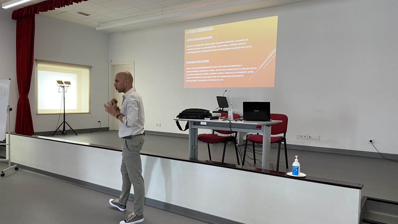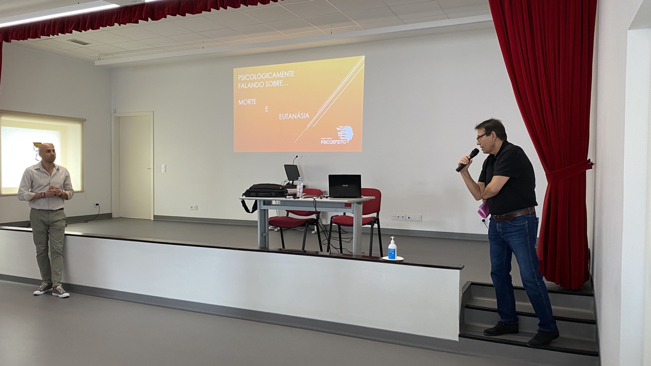 No prosseguimento da iniciativa da Unisseixal de proporcionar aos seus alunos e professores a realização de vários eventos no corrente mês sob o lema “Julho Com Vida” realizou-se ontem dia 12 no auditório uma sessão denominada “Desmistificar os temas sobre a Morte e Eutanásia” conduzida pelo Dr. Nelson Pereira (Psicólogo), professor da Universidade desde o presente ano letivo.