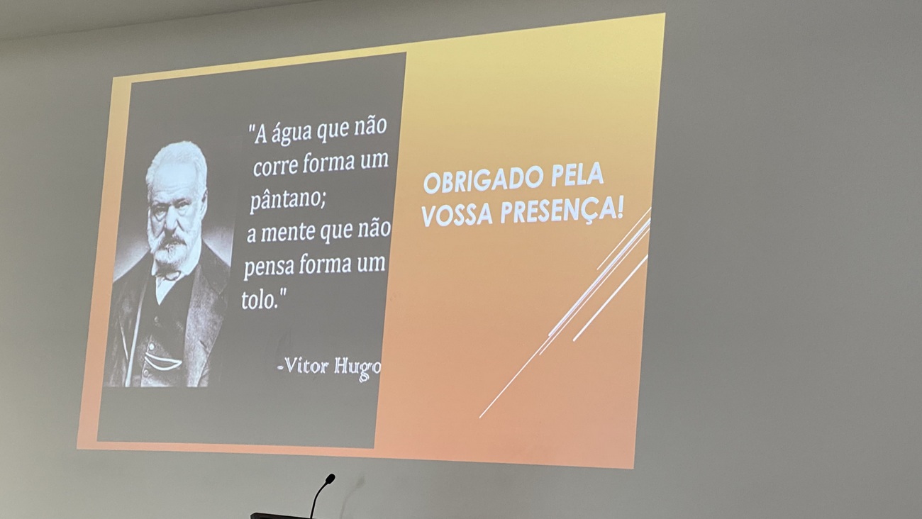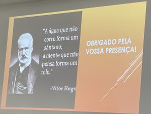Para encerramento da sessão o Dr. Nelson escolheu um slide com a frase do pensador e escritor francês Vitor Hugo – “A água não corre, forma um pântano; a mente que não pensa forma um um tolo”
