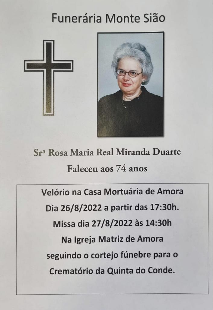 A partir das 17:30 horas de Sexta-feira podemos velar o corpo da Rosa, na capela mortuária de Amora.