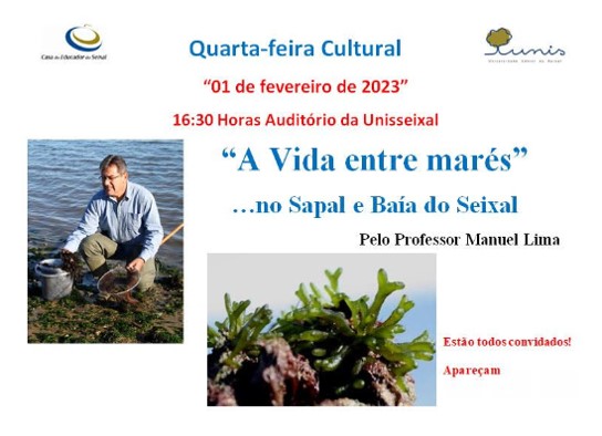 A Unisseixal inicia o mês de fevereiro com uma quarta feira cultural, cujo o tema "A Vida entre Marés" vai ser apresentado pelo Professor Manuel Lima.