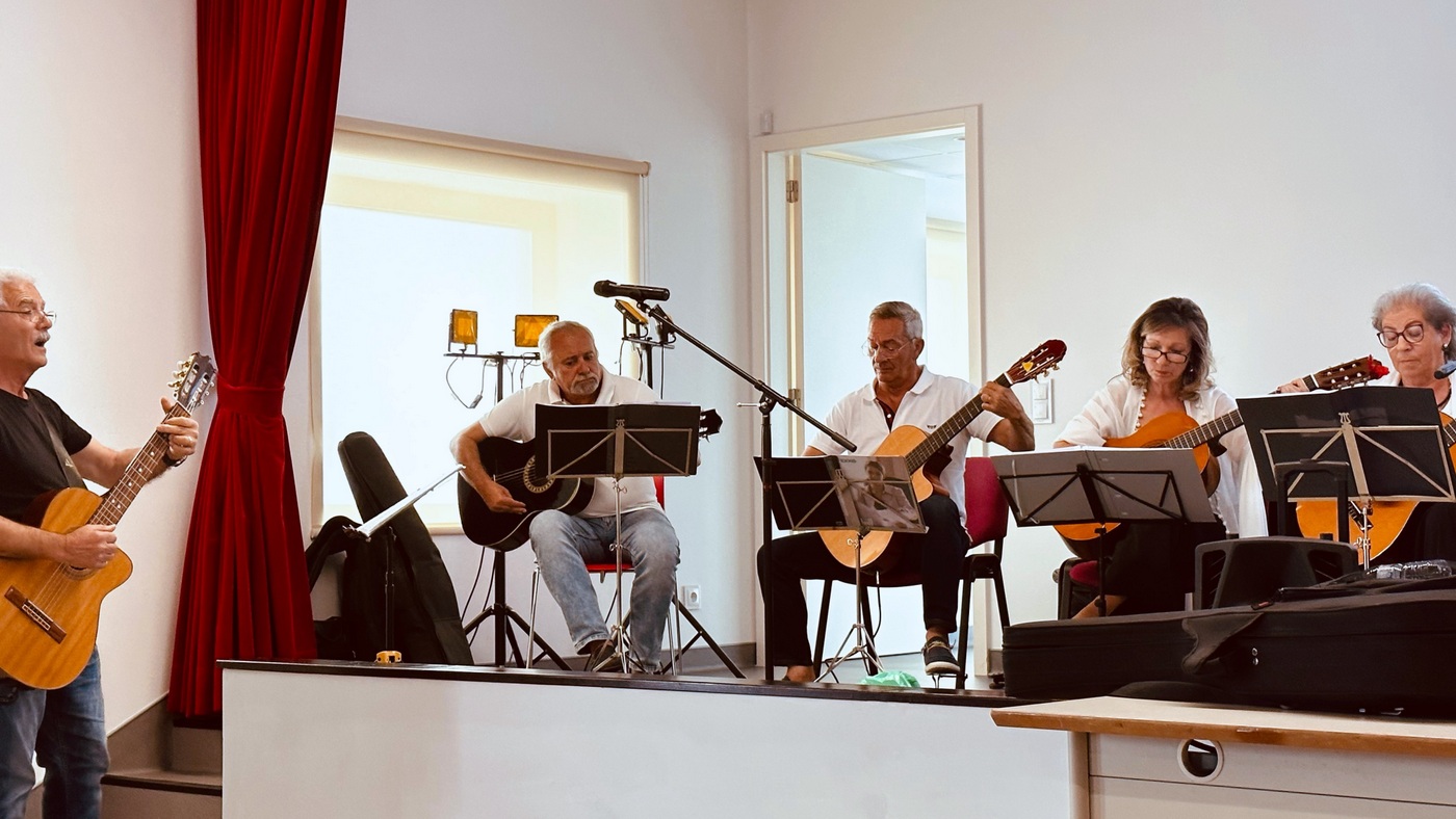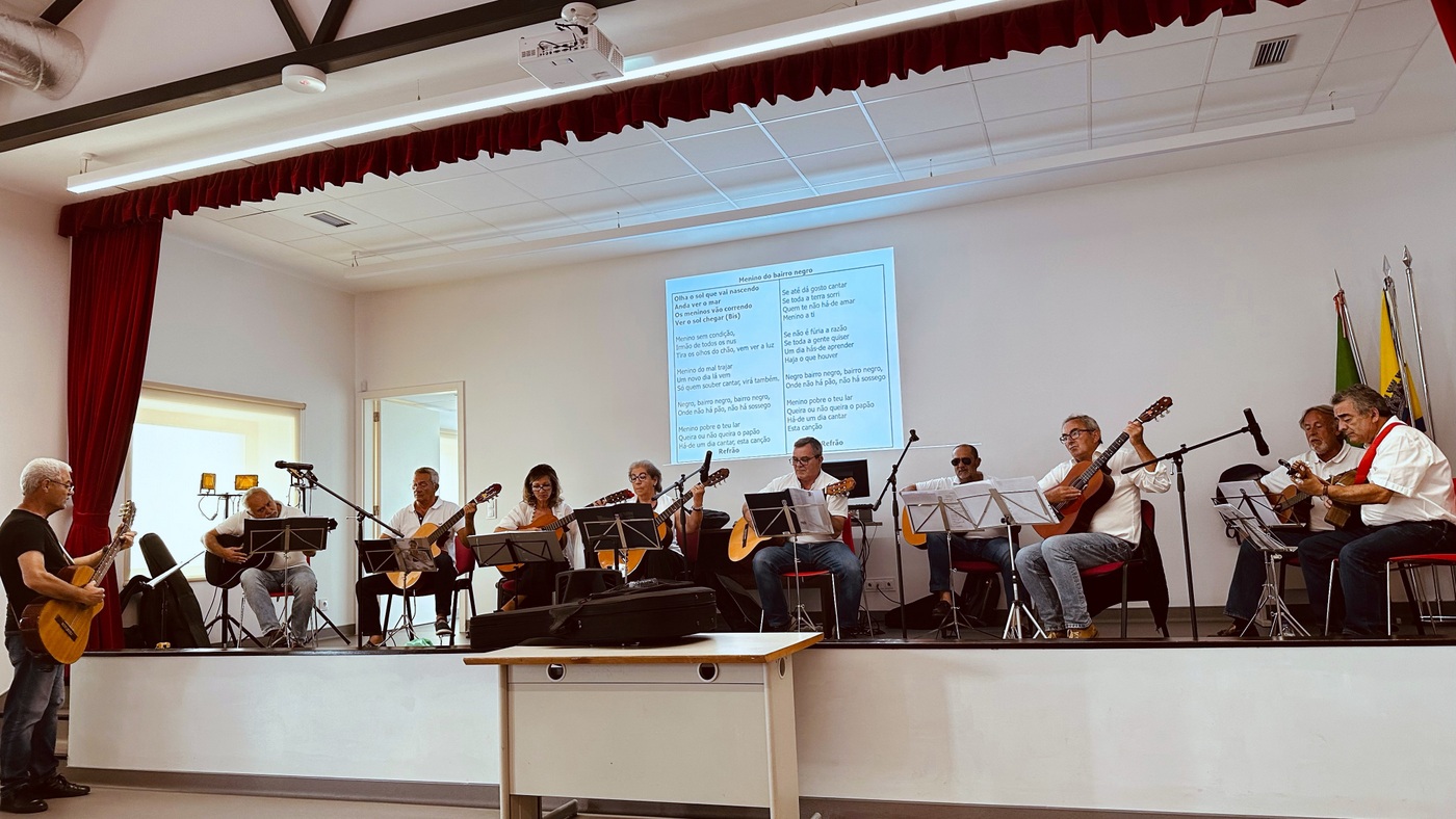 aprendizagem, cantando lindas canções em inglês e francês ou fazendo pequenos squashes muito do agrado dos colegas presentes que enchiam por completo todo o auditório. De salientar a bonita atuação da turma de violas do prof. Lino Madruga, que fez o encerramento desta “Às Segundas-Feiras Acontece”.