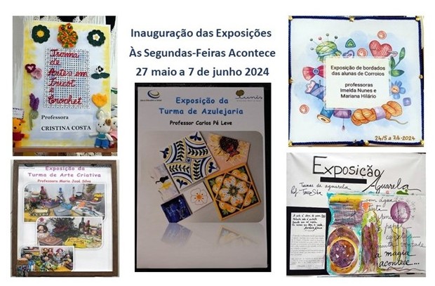 Inaugurações das Exposições " Bordados e Bainhas Abertas", “Pintura a Aguarela”, “Azulejaria”, “Arte Criativa “e “Artes com Tricot e Crochet” em 27/5/2024