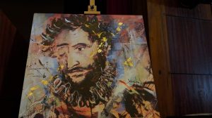 No palco, como cenário tivemos uma tela de Francisco Xicofran Fernandes (o Épico) em tintas que deliciou todos os presentes e na entrada do auditório, o Padrão dos Descobrimentos do mesmo artista.
