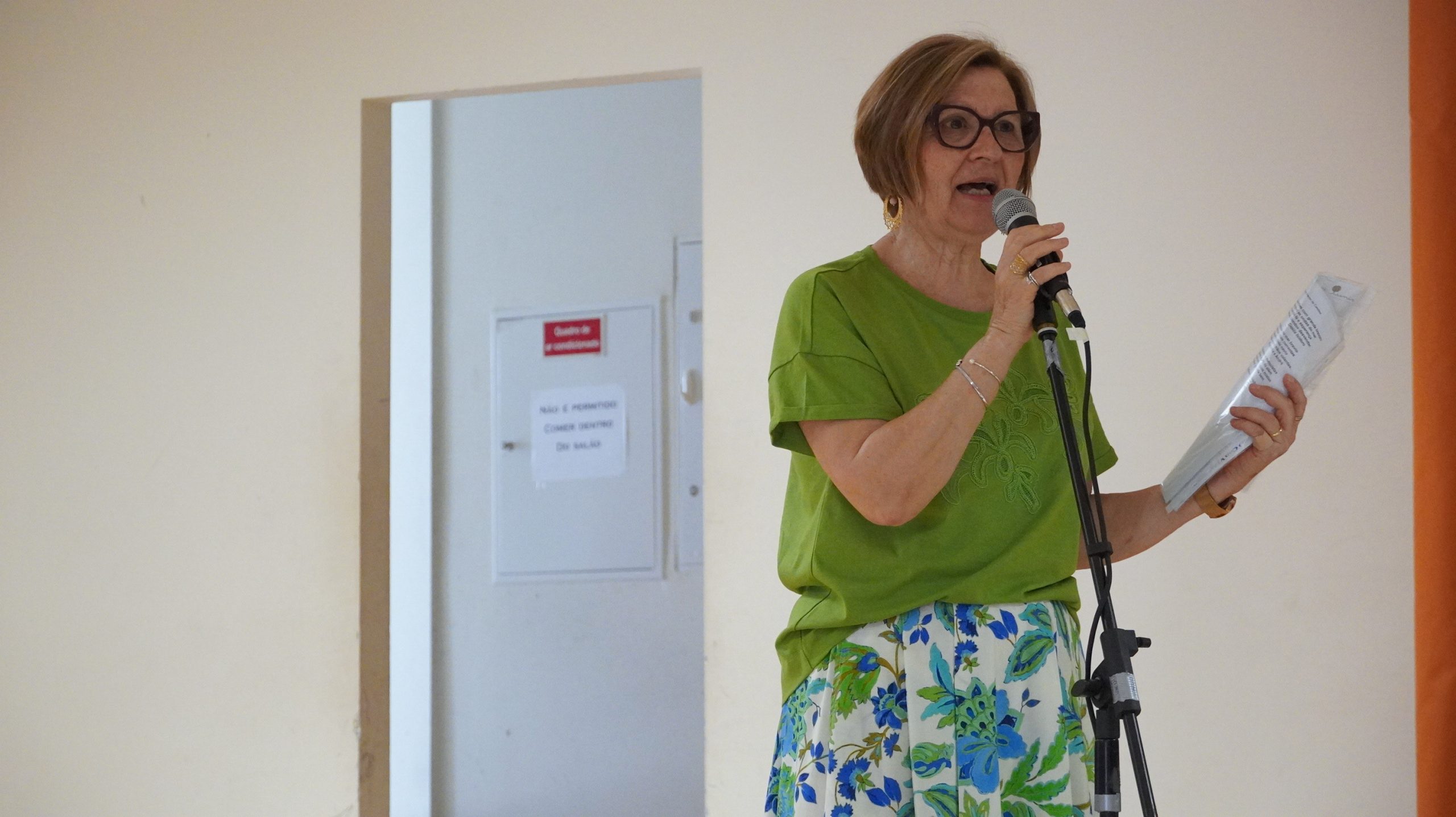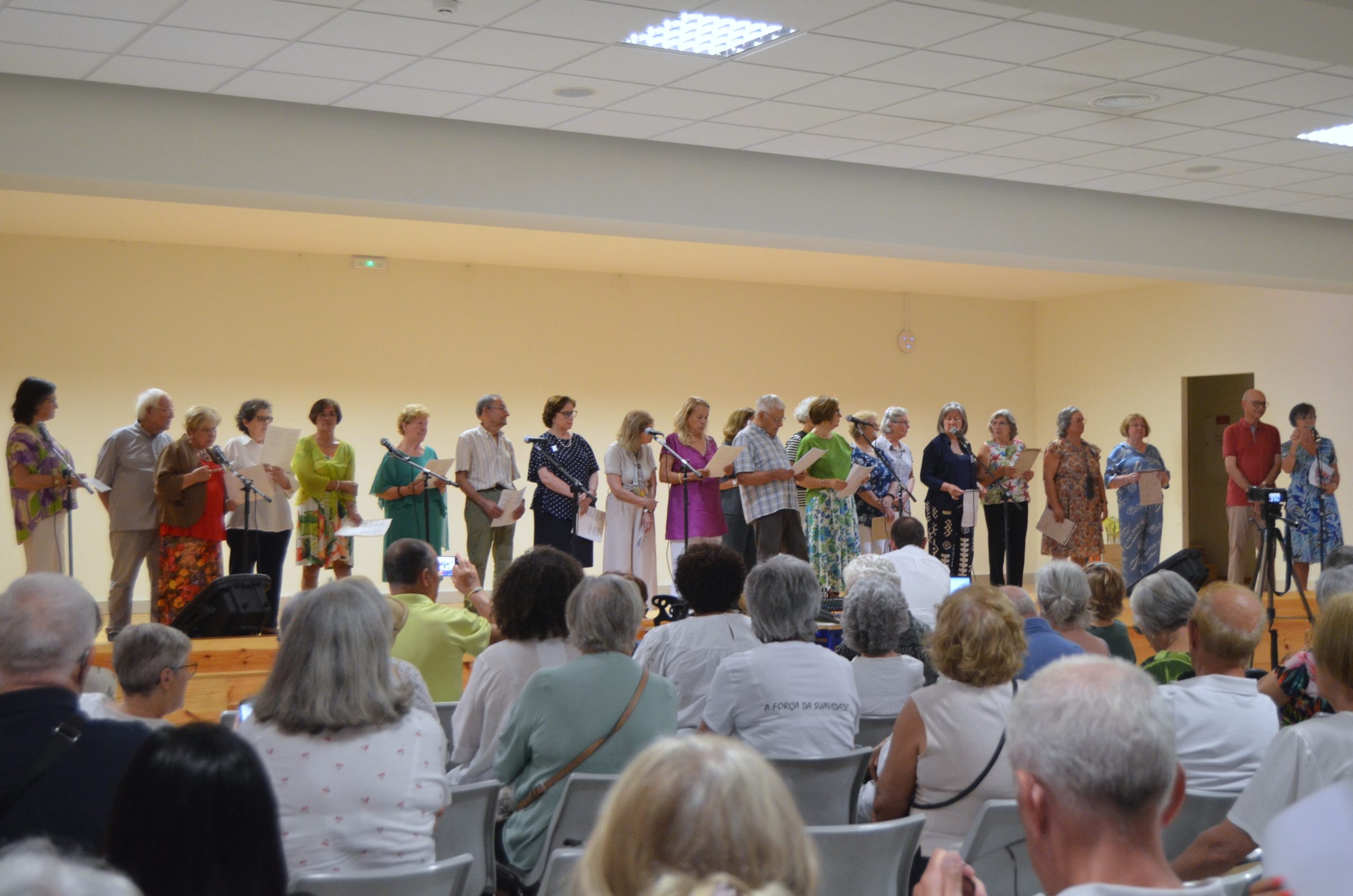 A condução da tarde esteve a cargo da Prof. Amélia Costa, que abriu o evento com palavras de apreço dirigidas ao público que enchia completamente o auditório, aos professores que colaboram voluntariamente neste valioso projeto de ensino sénior, e aos alunos, que são o verdadeiro coração da UNISSEIXAL.