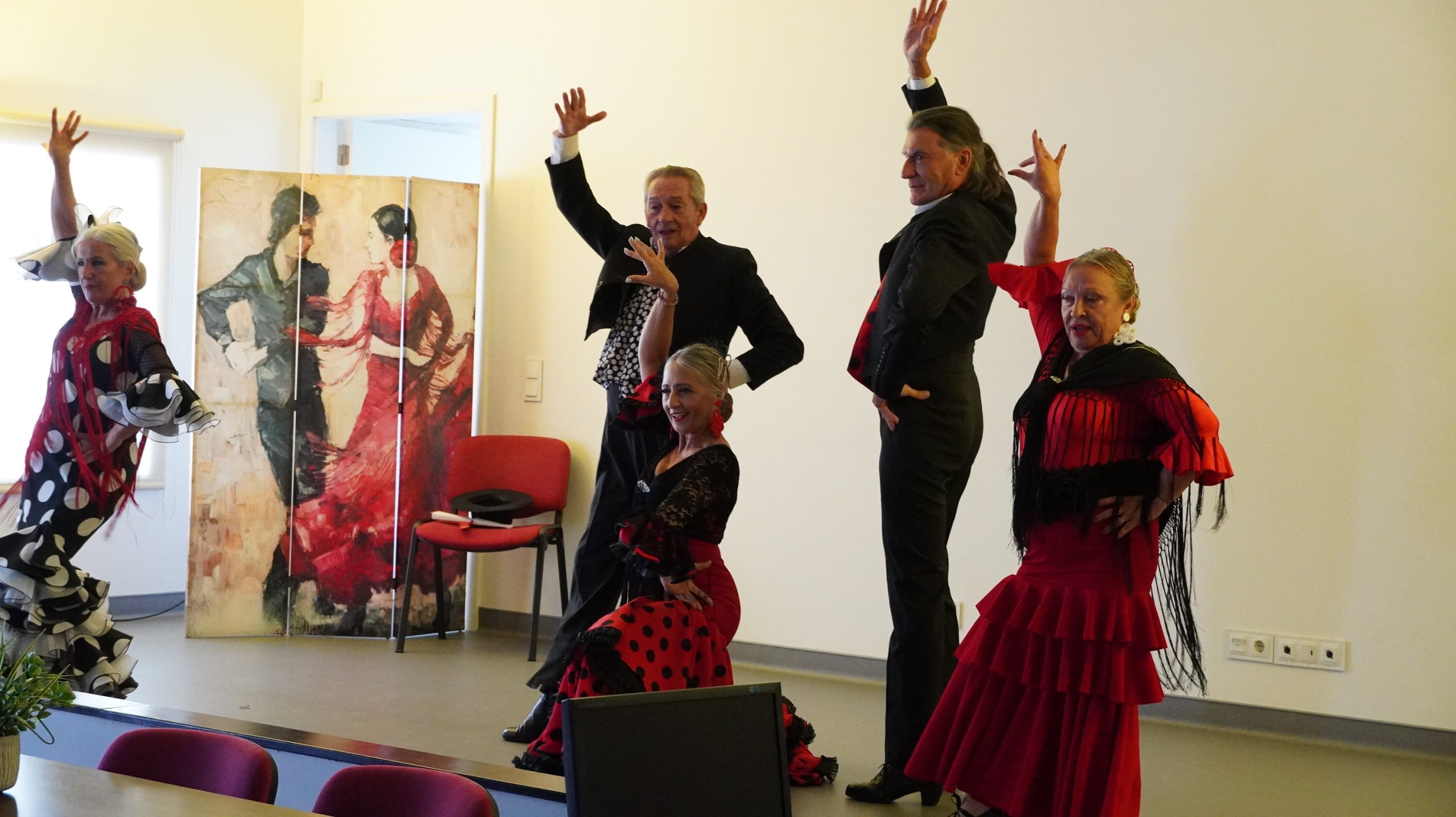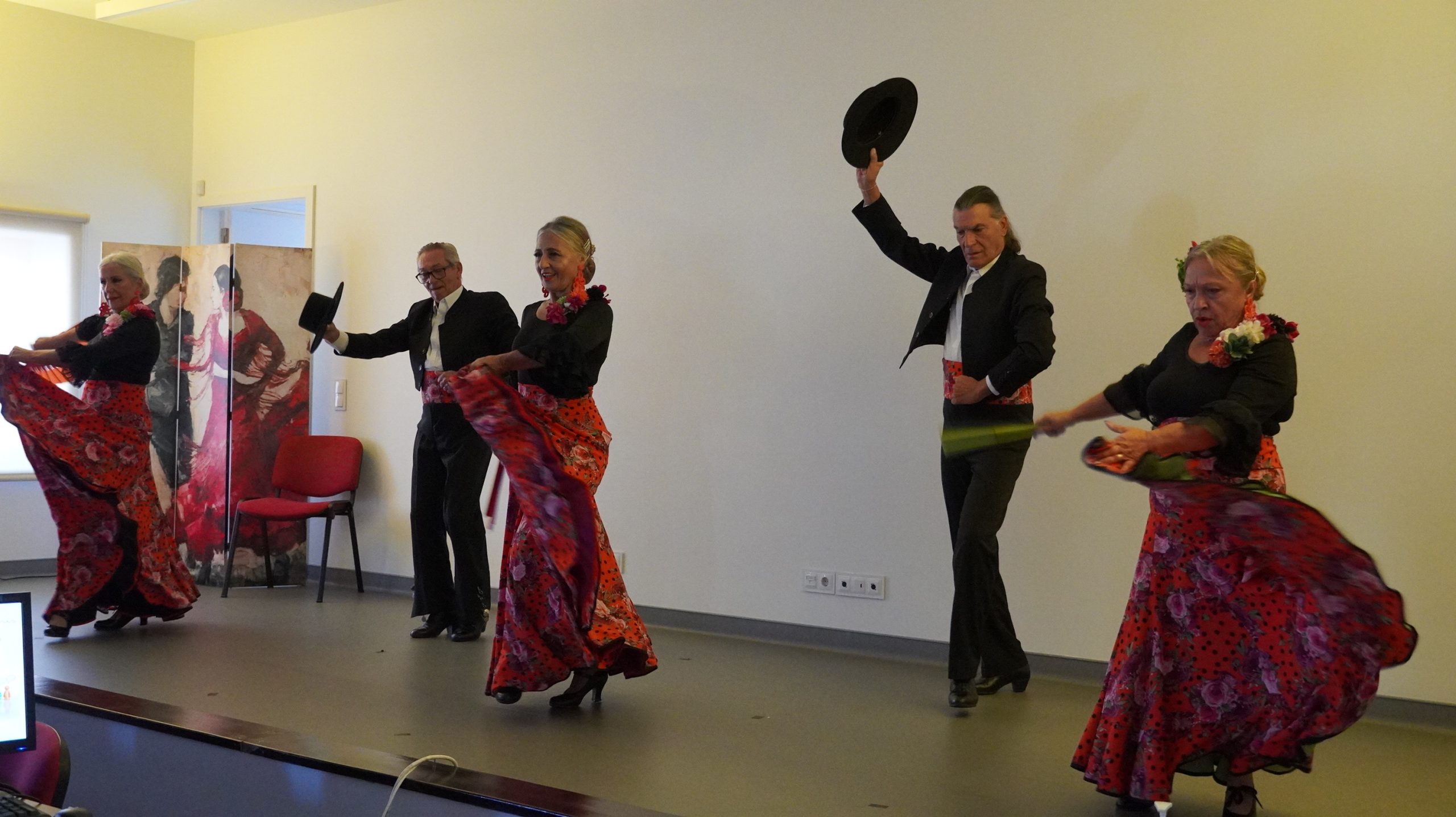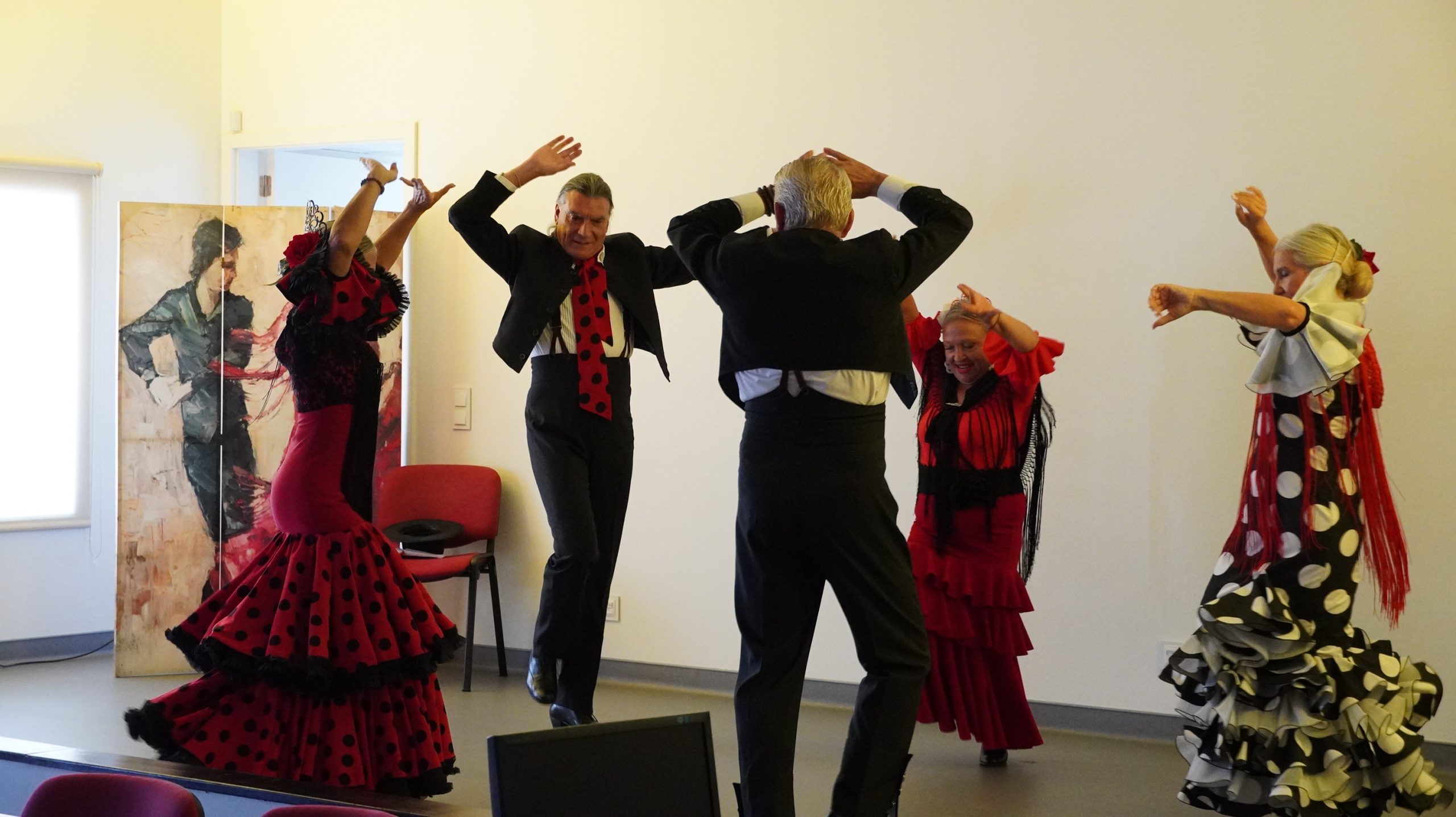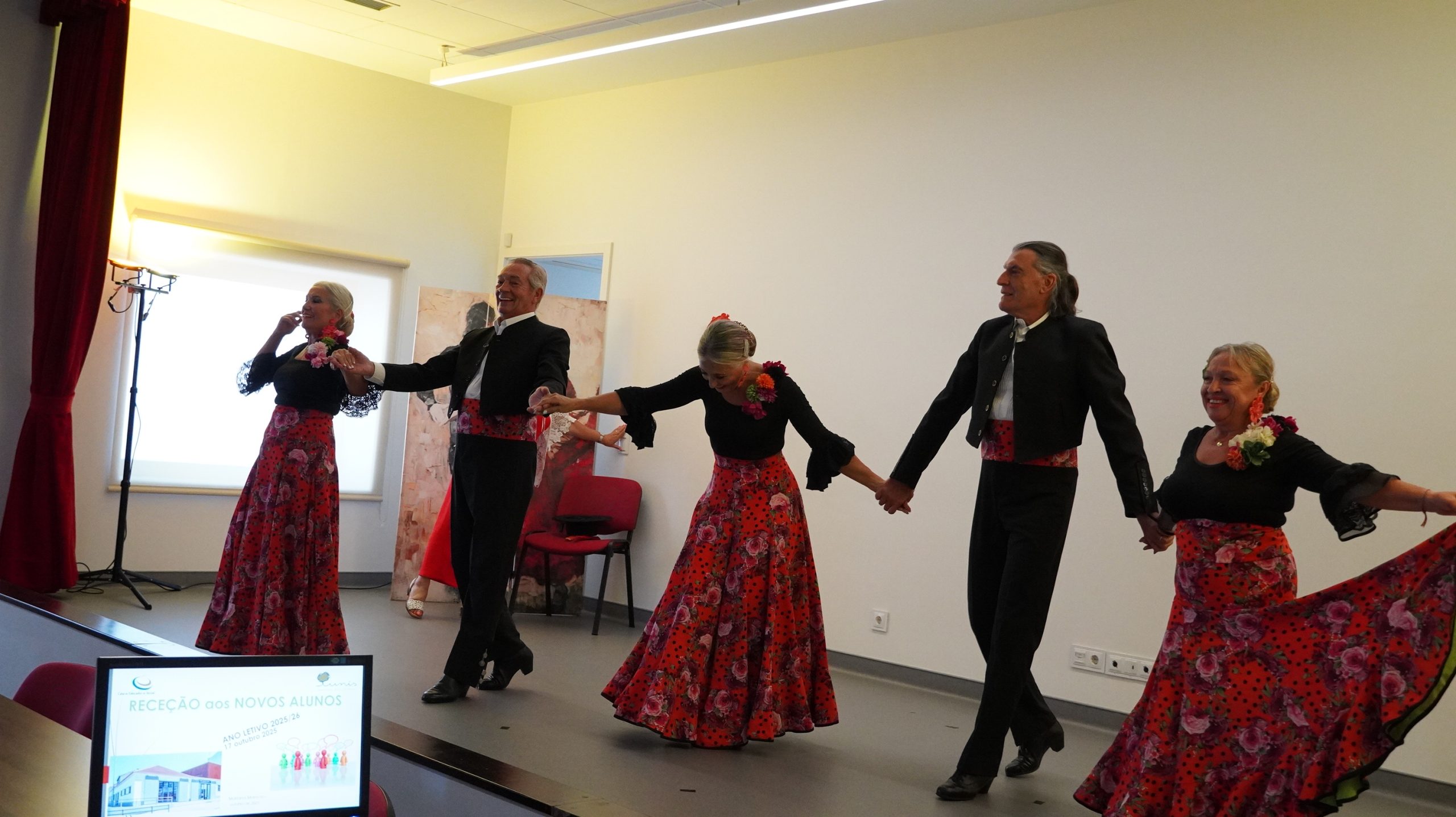 A sessão de boas-vindas, que decorreu no grande auditório completamente cheio, foi aberta pela Sra. Reitora, Prof.ª Mariana Mareco, que dirigiu uma calorosa saudação a todos os presentes. Para abrilhantar o momento, subiu ao palco um grupo de sevilhanas, cuja atuação encantou o público e terminou com fortes aplausos e entusiásticos olés.