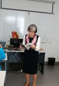 Risotas e várias intervenções dos presentes na aula, comparação com a linguagem atual da juventude. Várias opiniões sobre o texto e pedido de elaboração da continuidade do mesmo pelos alunos.