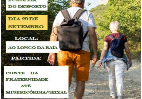 À semelhança dos anos anteriores a RUTIS voltou a propor, na Semana Europeia do Desporto, mais uma Caminhada Europeia Sénior, então, convidamos a todos para participarem nesta atividade. Participem Dia 29 de setembro (quinta-feira) Saída às 09H Local: Ponte da Fraternidade-Seixal e regresso Aproximadamente 7 km P’lo Conselho Diretivo. Mariana Mareco