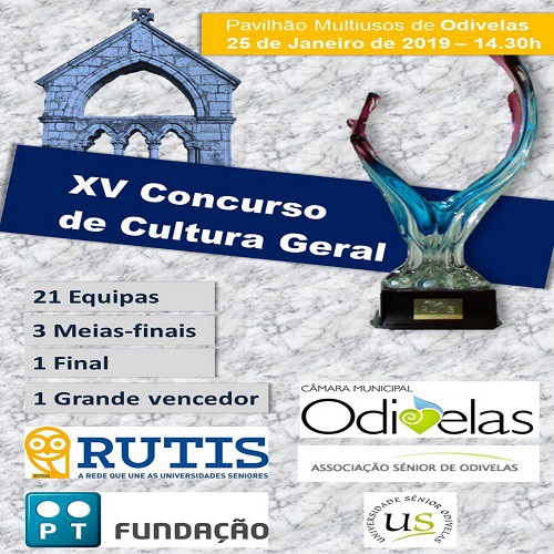 No dia 25 de Janeiro de 2019, pelas 14:30, no Pavilhão Multiusos de Odivelas, vai realizar-se o XV Concurso de Cultura Geral, a nível Nacional, com o título “O Saber não tem Idade”, promovido pela RUTIS em parceria com a Universidade Sénior de Odivelas e a respectiva Câmara Municipal. É mais um momento importante para a nossa Universidade Sénior […]