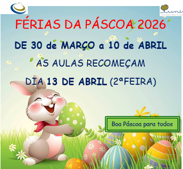 Uma Páscoa com muita Paz, Saúde e Alegria.A Direção da Unisseixal deseja a todos os Professores, Alunos e Funcionários os melhores votos de uma Páscoa Feliz.Relembramos que as Férias da Páscoa são de 30 Março a 10 de Abril.As aulas recomeçam 2ª feira, dia 13 de Abril.